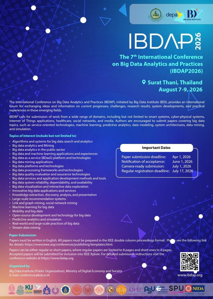 The International Conference on Big Data Analytics and Practices (IBDAP2026), initiated by Big Data Institute (BDI), provides an international forum for exchanging ideas and information on current progresses, challenges, research results, system developments, and practical experiences in these emerging fields.
